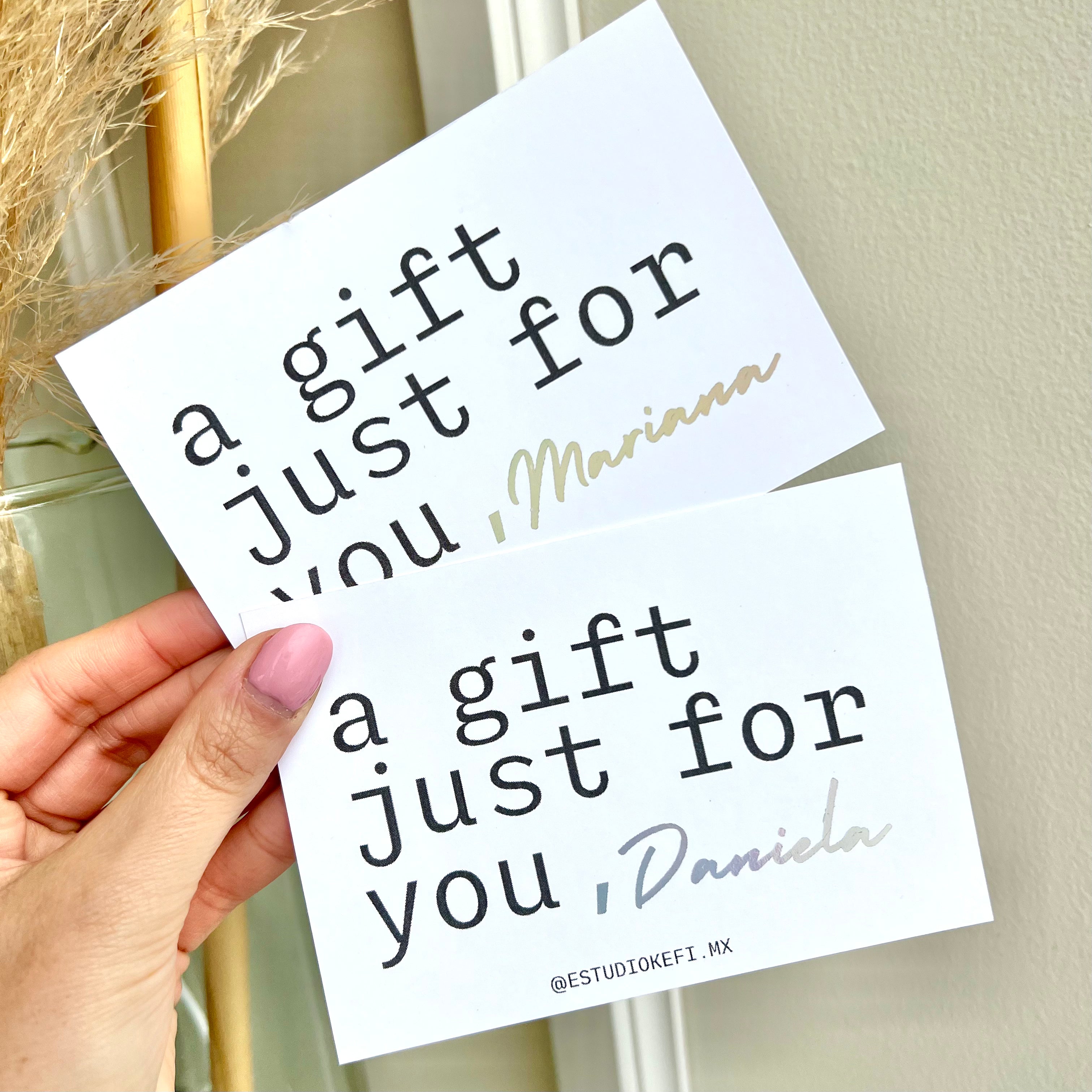 Tarjeta de regalo para tu pedido, personalízala con el nombre de tu persona favorita.
